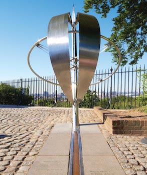 The Royal Observatory in Greenwich, England, is famously home to the line of 0 degrees longitude—the imaginary north-south line that, in the imaginary grid of longitude and latitude that circles the Earth, divides the Eastern and Western hemispheres of the globe. Known as the Greenwich meridian, or prime meridian, the line was established at an international conference in 1884 as the “initial meridian” from which all other lines of longitude would be calculated. Today the Royal Observatory draws hundreds of thousands of visitors each year to straddle the marker that traces the line, one foot in each hemisphere.